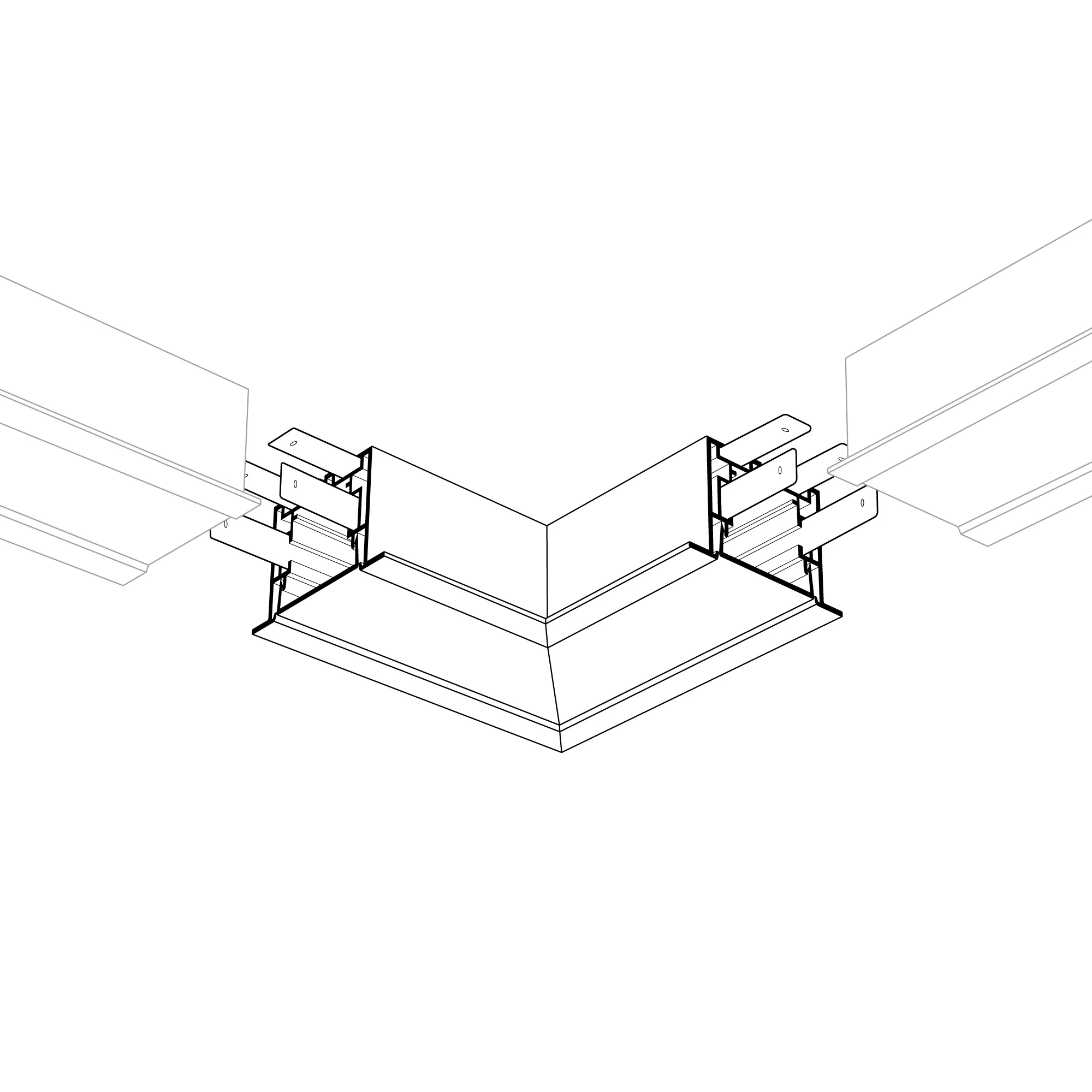 Прямой угол в сборе для соединения 2-х профилей S2-LINIA55-F под прямым углом 90°. Экран образует линию на плоскости. В комплекте матовый экран, соединители. Длина внешней стороны угла 100мм.