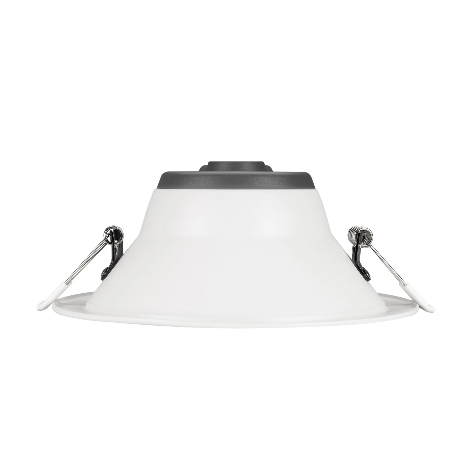 Светильник даунлайт с изменяемой цветовой температурой и переключателем на корпусе. Мощность 20 Вт, св. поток 2439-2517 лм, 100 лм/Вт, белый 6000К, или дневной 4000К, или теплый 3000К (выбор цвета свечения при установке, фиксированный), CRI>80, угол 80°, напряжение питания 230 В. Белый круглый корпус из алюминия, степень защиты IP20. Размер: диаметр 174 мм, высота 72 мм. Монтаж встраиваемый, установочное отверстие: диаметр 145-155 мм. Драйвер 18-30 В, 700 мА, пульсация <0,7%.