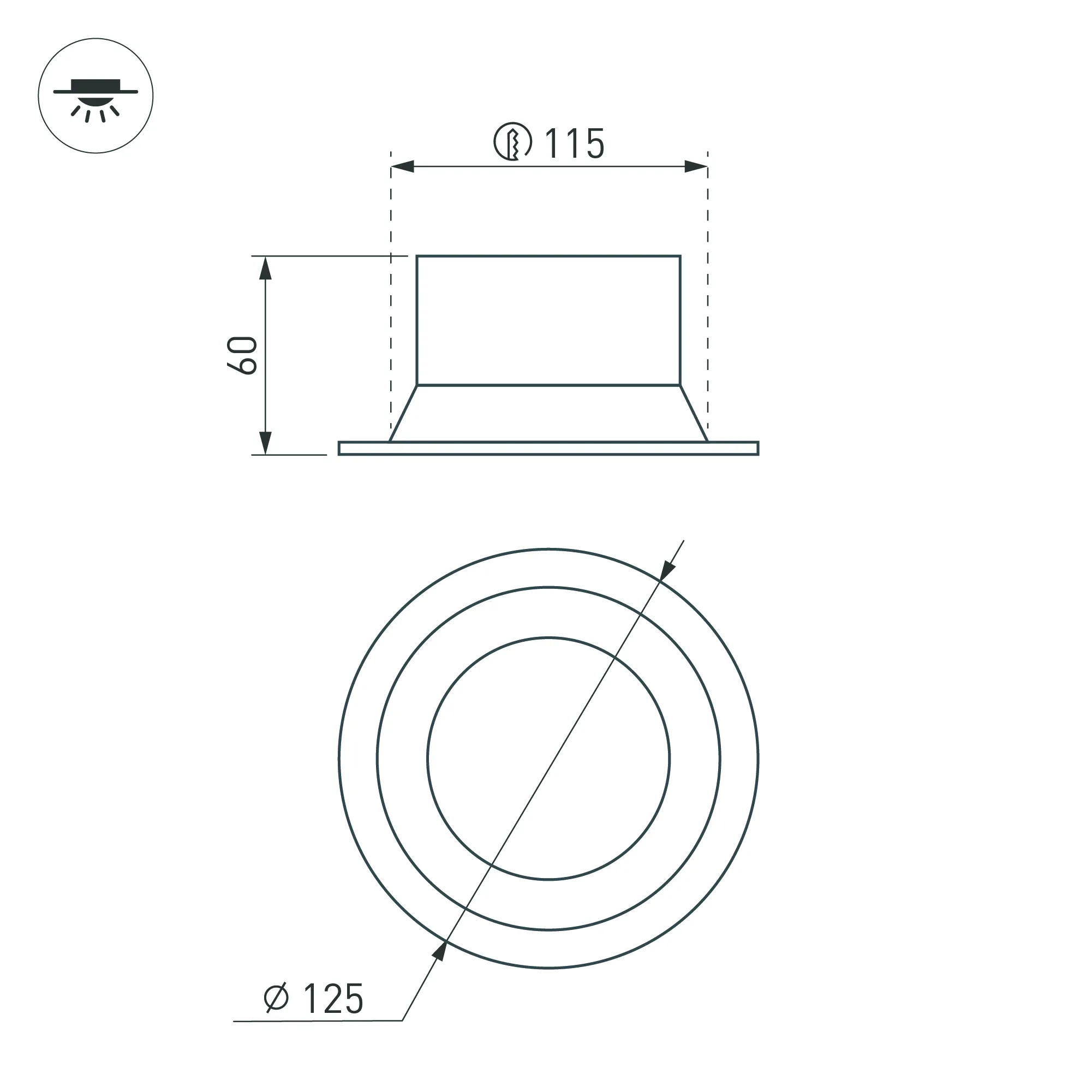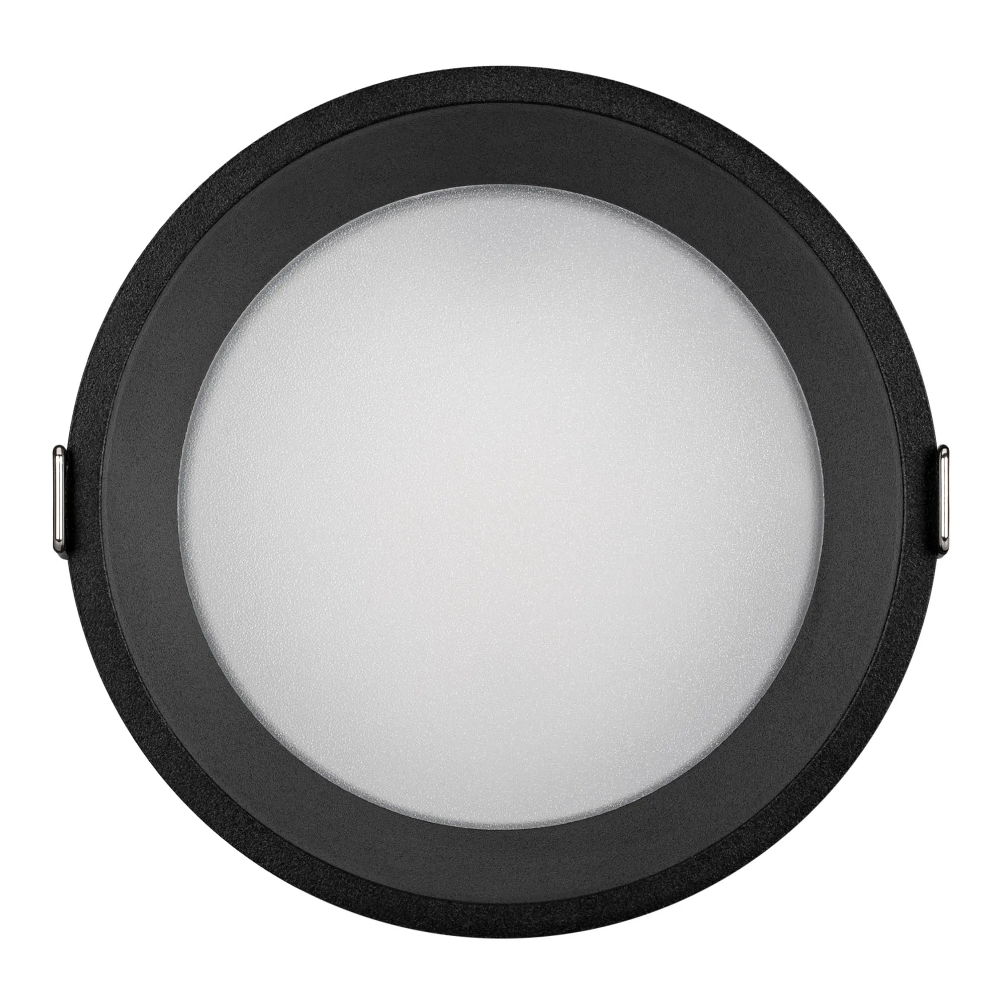 Встраиваемый светильник даунлайт. Мощность 16 Вт, св. поток 960 лм, 60 лм/Вт, дневной 4000 K, CRI>90, угол 85°, напряжение питания 230 В. Чёрный круглый корпус из алюминия, степень защиты IP20. Размер: диаметр 125 мм, высота 60 мм. Монтаж встраиваемый, установочное отверстие: диаметр 115 мм. Драйвер 27-42 В, 400 мА, пульсация <2%.