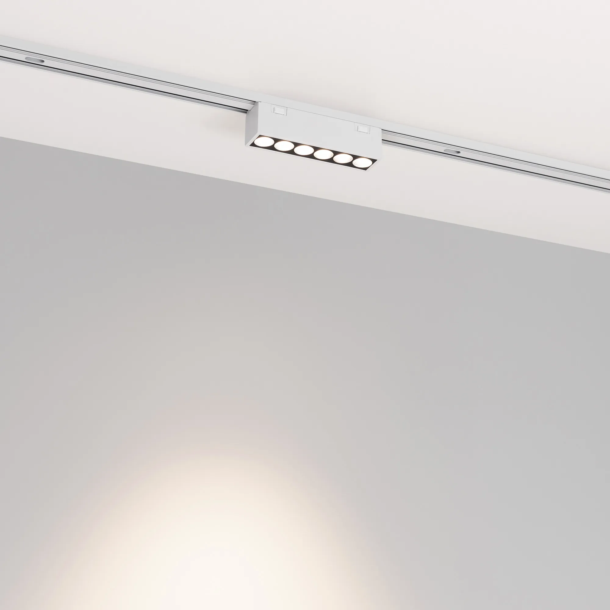 Светильник для магнитных треков MAG-VIBE. Мощность 6 Вт, св. поток 490 лм, 82 лм/Вт, дневной 4000 K, CRI>90, угол 24°, напряжение питания 48 В. Белый прямоугольный корпус из алюминия, экран поликарбонат, степень защиты IP20. Размер: длина 101 мм, ширина 25 мм, высота 29 мм. Монтаж на трек MAG-VIBE. Пульсация <1%.