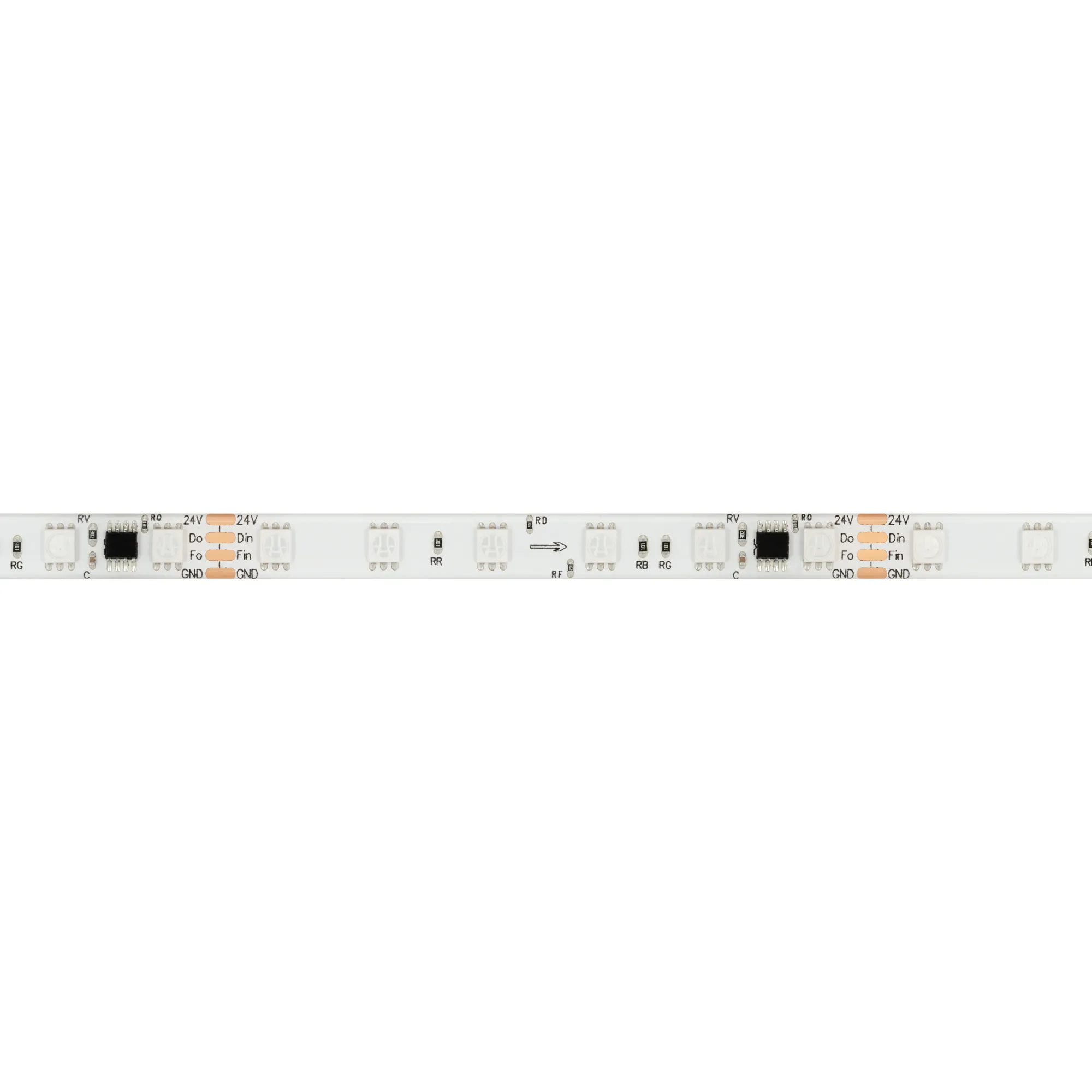 Светодиодная герметичная лента SPI серии B60 с микросхемой MT1808A, IP65 (SE- силиконовый верхний слой). Светодиоды SMD 5060, 60 шт/м, 10 pixels на 1 м (50 pixels на 5 м), 1 pixel = 6 светодиодов, белая плата шириной 10 мм, обход битого пикселя - BPT, скотч 3М. Цвет RGB, угол 120°. Питание 24 В, мощность 12 Вт/м (60 Вт на 5 м). Размеры 5000x10x4 мм. Мин. отрезок 100 мм, 6 светодиодов. Цена за 1 м.