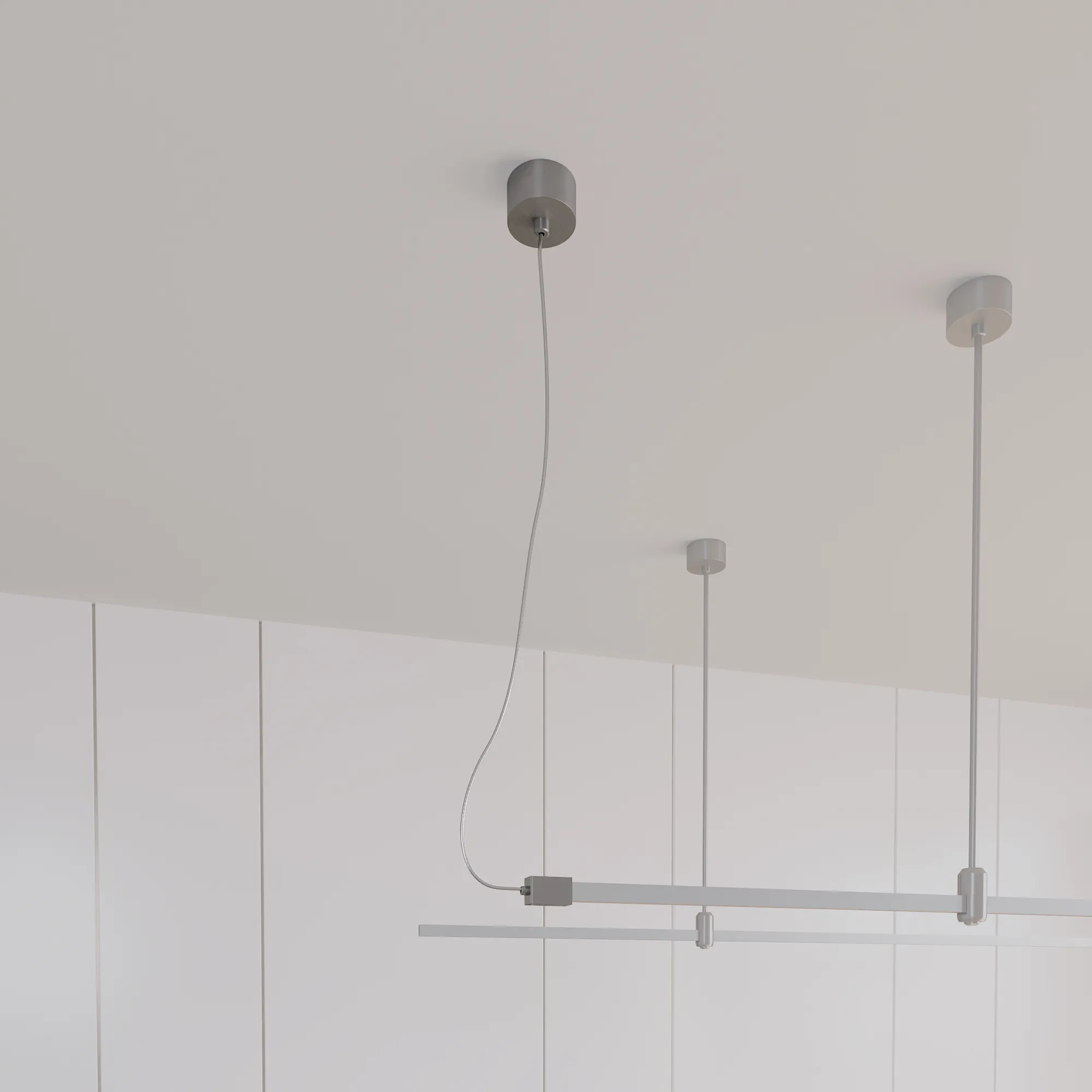 Потолочная чаша с боковым подводом питания треков системы APRIORI. Напряжение питания DC48V. Размер Диаметр чаши 80 мм, внутренний диаметр чаши 74 мм, внешняя высота чаши 38 мм, глубина чаши до монтажного отверстия 25 мм, общая высота подвеса 1500 мм. Материал алюминий, цвет титан.